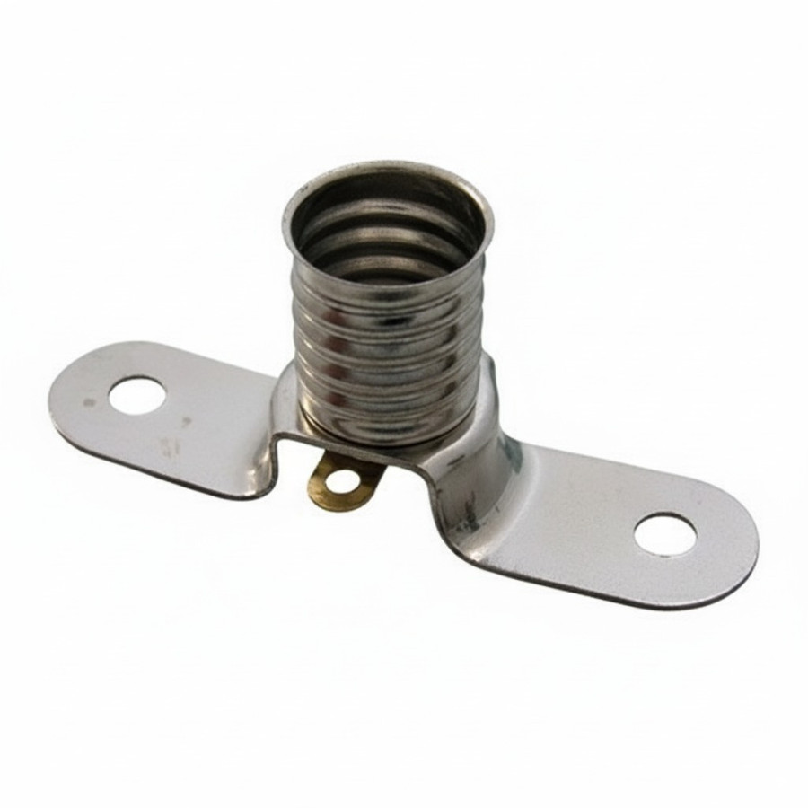 Ламподержатель FC10-E10 — это компактный патрон для ламп с миниатюрным цоколем E10 (10 мм). Корпус изготовлен из высокопрочного термопласта, устойчивого к нагреву до 125 °C; контактная группа — из латуни с никелевым покрытием, что обеспечивает низкое переходное сопротивление и длительный срок службы. Предназначен для установки в лабораторные конструкции, декоративные светильники, карманные фонари, новогодние гирлянды, приборные панели и учебные электронные макеты. Монтаж осуществляется двумя винтовыми зажимами или пайкой двух выводных контактов на печатную плату / кабель. Благодаря габаритам 14 × 14 × 22 мм и весу 4 г патрон легко размещается даже в самых компактных изделиях.